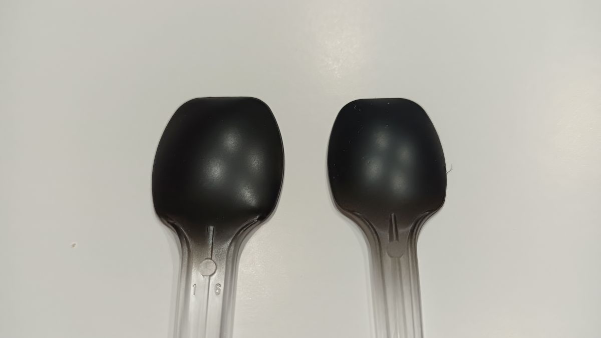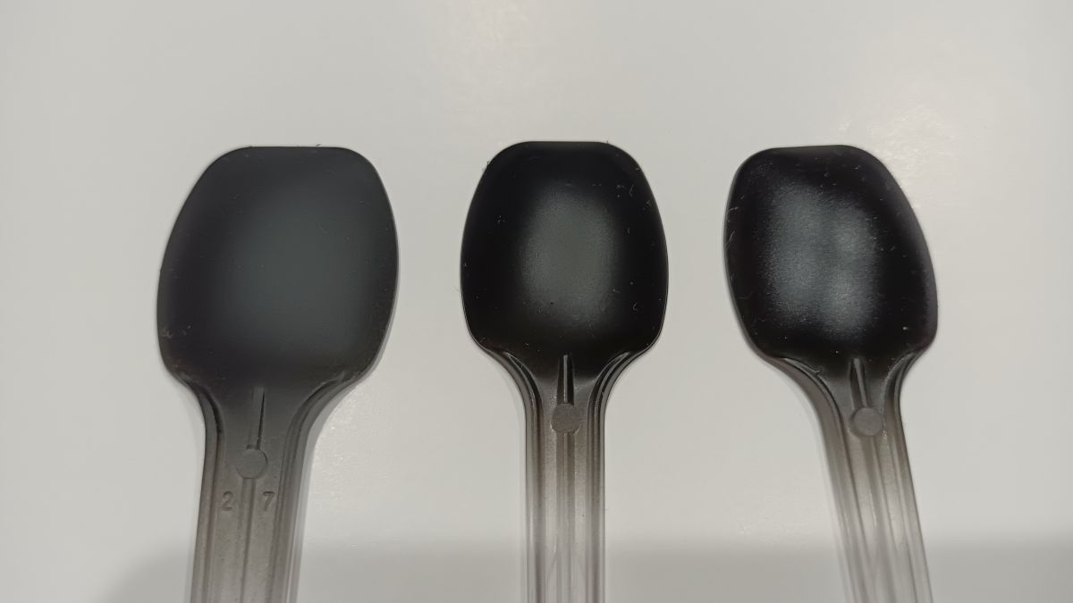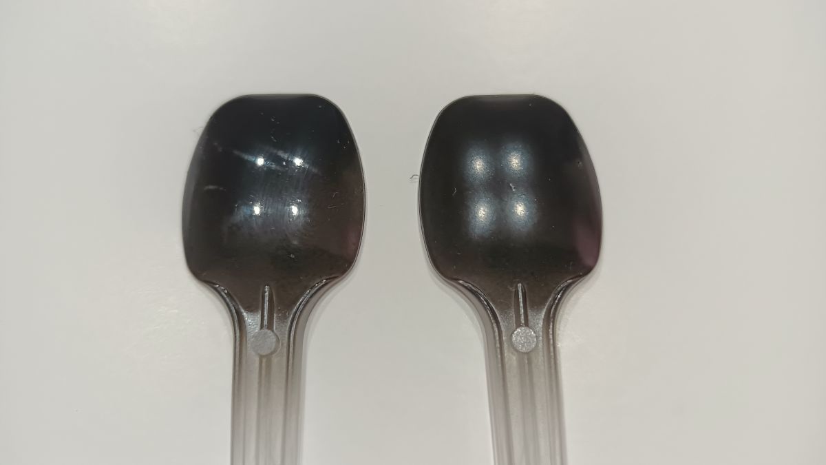 - 液体の色:ポリウレタン版よりも白っぽい液体。
