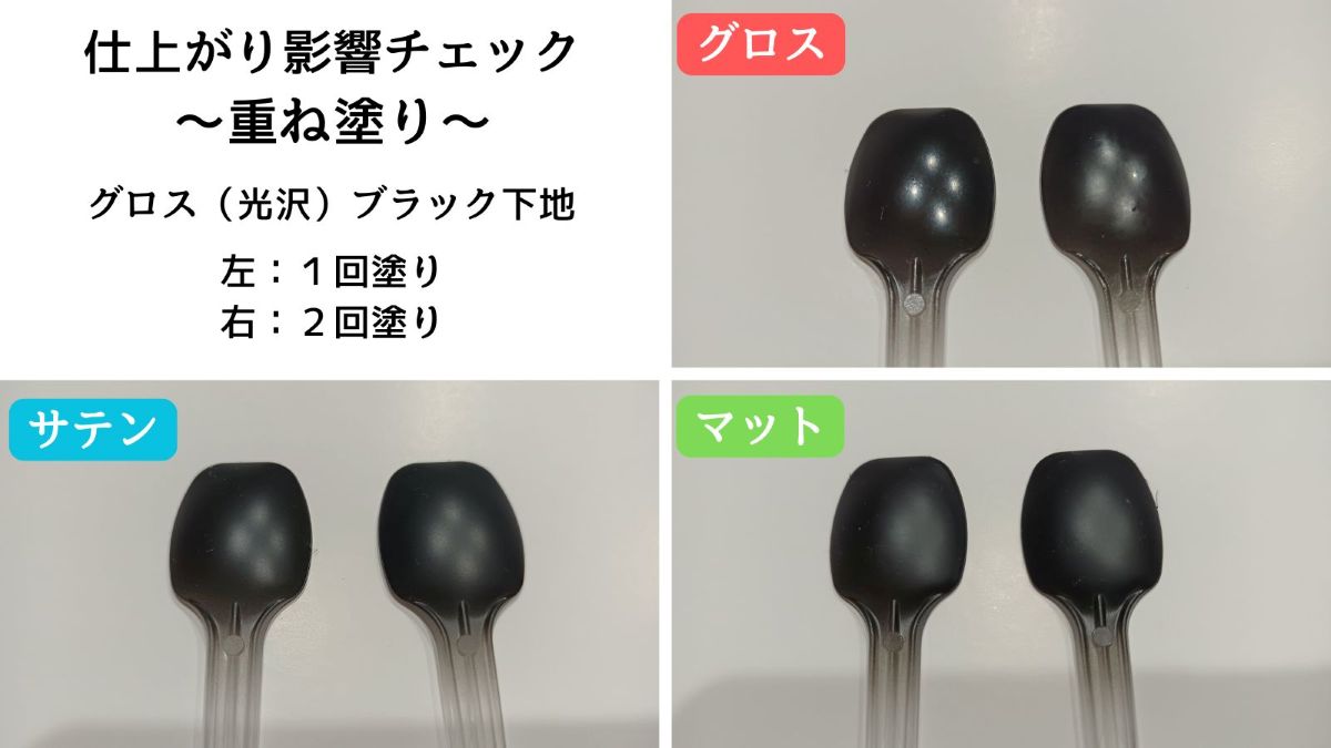 下地・重ね塗りの影響|グロスはシビア、サテン・マットは安定