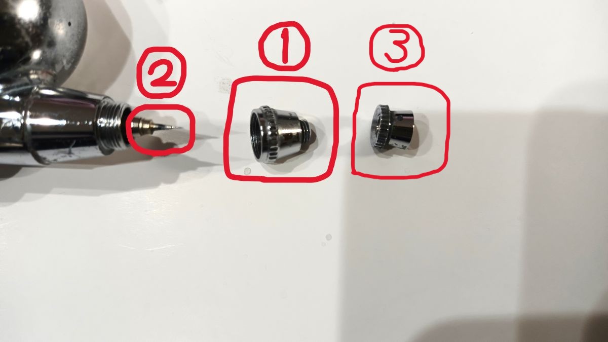 まずは、自分が経験した「詰まり」が、エアブラシのどの部品で起きたかを紹介します。
